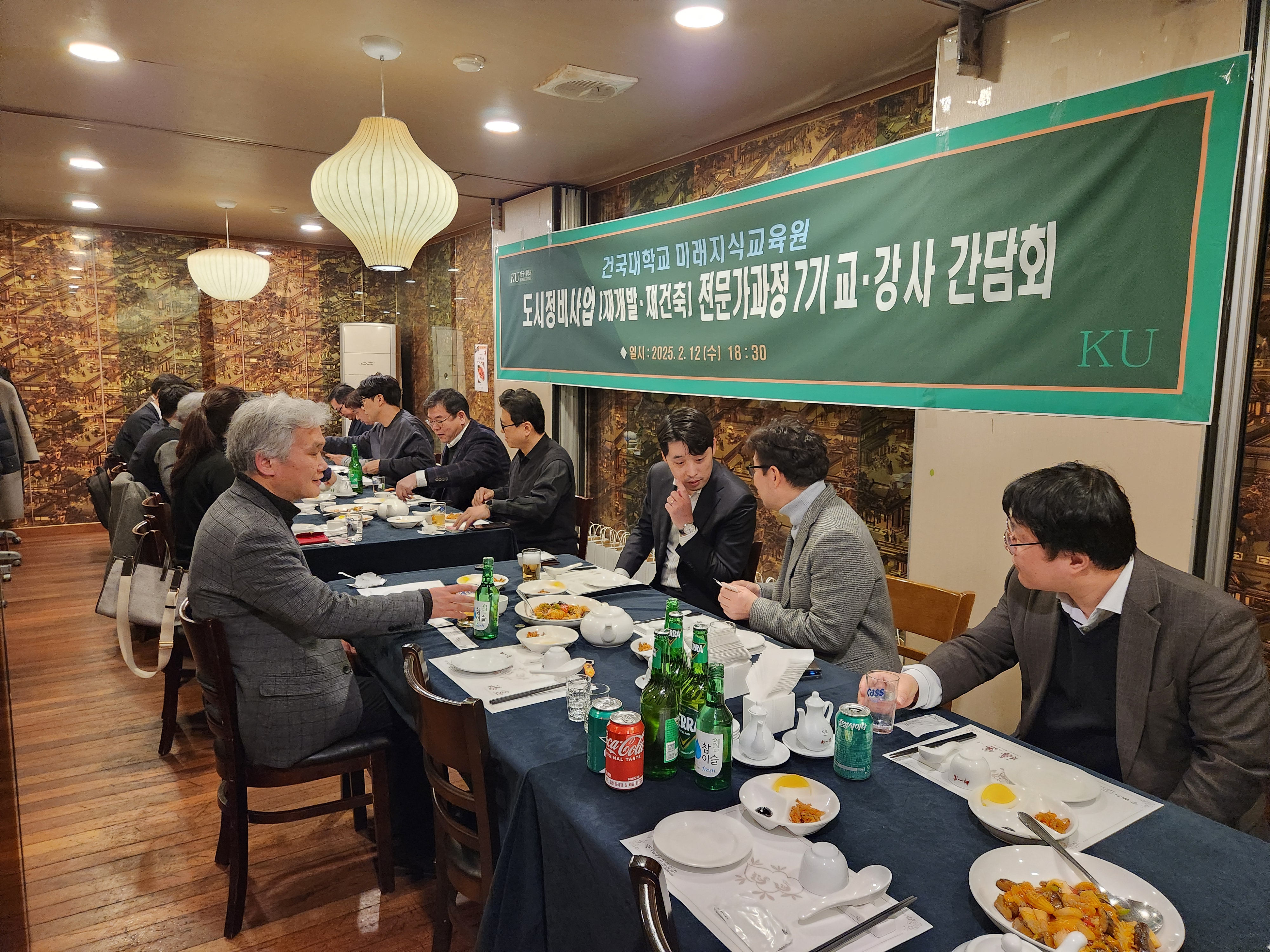 건국대학교 미래지식교육원 도시정비(재개발·재건축)사업 전문가 과정(김덕기 박사-법학박사,부동산학박사)에서 2025년 1학기 강의를 진행하는 교·강사들과 함께 건국대학교 앞 모처에서 「전문 교·강사 간담회 」를 진행했다.